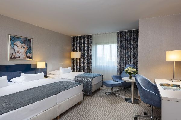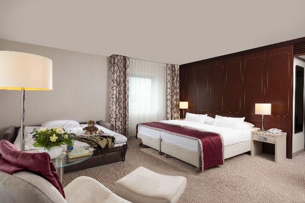 In den geräumigen Zimmern schlafen Sie komfortabel. Kostenfreies WLAN, eine Minibar und ein Zimmersafe stehen für Sie bereit. Kleine und große Köstlichkeiten werden Ihnen im Café Brasserie und im Bistro La Marée serviert. Besonders gemütlich schlemmen Sie auf der Brunnenterrasse im Sonnenschein. Aber auch das Frühstück ist ein echter Genuss. Das reichhaltige Buffet bietet eine enorme Vielfalt an warmen und kalten Speisen, die Ihnen den Start in den Tag versüßen. Entspannen können Sie in der Finnischen Sauna sowie der Bio-Dampfsauna. Die großen Tagungskapazitäten laden dazu ein, diverse Veranstaltungsformen zu beherbergen und diese erfolgreich durchzuführen.