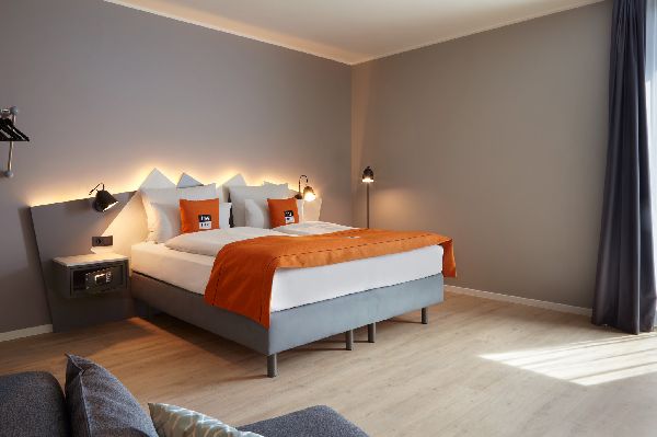 The appealing hotel design picks up on clear shapes and lines and contrasts calm gray with colorful elements. We are happy to welcome you to the open lobby. The reception is open throughout the day and also offers snacks. In the morning, an extensive breakfast buffet is served so that you can go on a tour of discovery in Dusseldorf well-refreshed. Throughout the hotel and in the rooms of course you can use the high-speed Internet connection via WiFi free of charge. If you are traveling to the city by train simply leave your car in the hotel parking lot or the underground garage.
