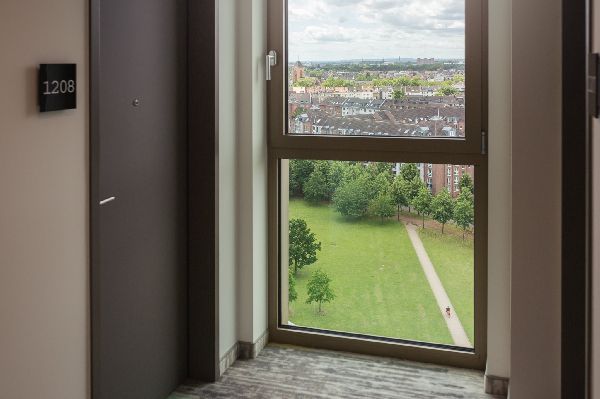 Thanks to our central location near the main train station, you can easily explore Düsseldorf on foot or by public transport. Our 438 comfortable double rooms offer modern amenities such as twin beds, 43" Smart TVs, and Bluetooth sound systems. Some rooms and the large terrace offer a wonderful view of the Bürgerpark. Welcome to the heart of the city!