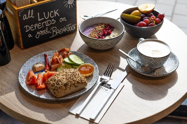 Welcome to Holiday Inn – the niu, Rig Lübeck, your relaxed Hanseatic home in the heart of the city. Lübeck is known as the gateway to the Baltic Sea – and our hotel celebrates this coastal spirit throughout: from the name and food & drinks to the turquoise-and-white color scheme and nautical touches like anchors, pirates, and sails. Housed in a charming listed building, our hotel combines historic character with modern comfort – perfect for city explorers, families, and business travelers alike. One of our biggest advantages is the central location: both Lübeck’s main train station and UNESCO-listed Old Town are just a short walk away – ideal for sightseeing or business trips. Prefer to take it easy? Our rooms offer everything for a relaxing stay: Smart TVs, invisible sound systems (main building only), screen mirroring, and plenty of USB ports. For those who need to work on the go but enjoy a lively atmosphere, our co-working area in the Living Lobby is just right. Our 24/7 bar is the place to unwind with a great drink and maybe meet a fellow traveler or two. Families are very welcome – we’re happy to provide an extra bed for your kids. And if you need help with tickets, tips, or directions, our multilingual front desk team is available for you around the clock.