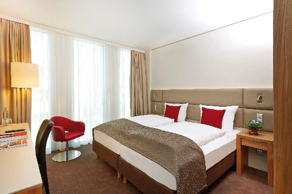 Im H4 Hotel München Messe wohnen Sie nur einen Katzensprung von den Messehallen entfernt. 215 Parkplätze und 2 E-Tankstellen sind vorhanden. 331 stilvoll eingerichtete Zimmer und Studios erwarten Sie mit Klimaanlage, inklusivem WLAN Flatsceen-TV mit Sky Sport, Safe und einer Kaffee- & Teestation sowie Badezimmer mit Regenwalddusche oder Badewanne und hochwertigen Kosmetikprodukten. Für Meetings und Tagungen sind 7 multifunktionale Tagungsräume mit moderner Veranstaltungstechnik vorhanden. Entspannung bietet der Wellness- und Fitnessbereich. 2 Restaurants sowie die „XanderBar“ runden das Angebot im H4 Hotel München Messe ab.