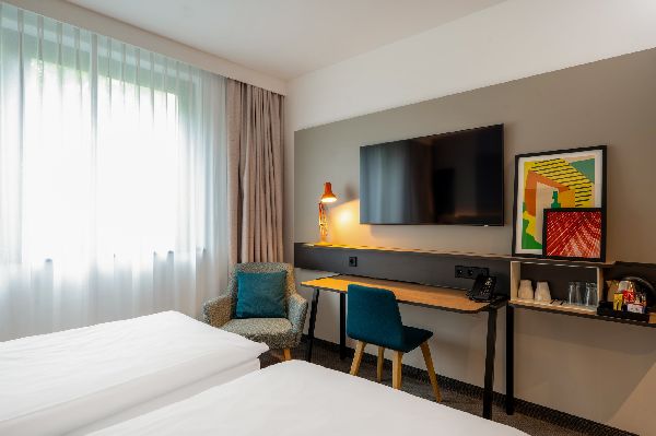 Discover Holiday Inn® Munich - Westpark, ideally located in the vibrant Sendling district, just 35 minutes from Munich Airport (MUC) and easily accessible from the main train station. Harras U-Bahn/S-Bahn station is a short 5-minute walk, putting Munich’s city center, Marienplatz, Nymphenburg Palace, and Westpark within easy reach. Enjoy Munich’s top attractions and family-friendly highlights like Hellabrunn Zoo. Explore the city by bike with our on-site rental, or relax in our modern guest rooms and spacious suites with underfloor heating. Children stay and eat for free, and suites with kitchenettes are perfect for families. Our hotel features eight flexible meeting rooms for up to 270 guests, a garden terrace for events, free Wi-Fi, an on-site parking garage, open lobby, restaurant, bar, fitness center, and sauna—everything to make your stay comfortable, productive, and memorable.