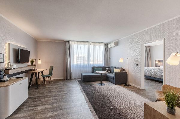 Holiday Inn® Dusseldorf - Neuss hotel is a short walk from the historic centre of Neuss. From the Langemarckstrasse tram station, just 10 minutes' walk away, it's a 15-minute ride to Dusseldorf city centre. The hotel has an underground car park and Dusseldorf Airport (DUS) is 20 minutes away by car. Visit the luxury boutiques of Konigsallee, the bars of Altstadt or stroll along the Rhine promenade. Neuss, one of the oldest cities in Germany, offers a wealth of cultural opportunities. Shopping is close by too, at Rheinpark Neuss shopping centre. Host up to 350 guests in the hotel's six naturally lit meeting rooms. The Toshiba and 3M company headquarters are nearby and it's a 20-minute drive to the CCD Congress Centre and Messe Dusseldorf.At this hotel you can enjoy:- Inclusive WiFi- On-site parking at a daily fee- Sauna and recreation room- All Day Dining- Kids stay & eat freeThe modernly furnished rooms and suites feature a pillow menu for a perfect night's sleep and are all equipped with a corner sofa. Start the day with a generous breakfast buffet at the hotel's modern Amaroso Restaurant with garden terrace, which also serves lunch and dinner. Relax in the sauna before enjoying a drink in the Sports Bar with Biergarten.