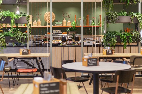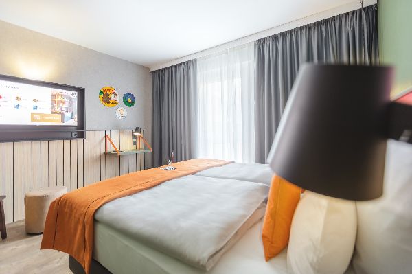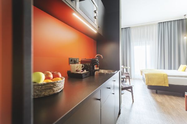 Stay in one of 270 tech-savvy rooms featuring high-speed WiFi, smart TVs, and Bluetooth speakers. Some premium rooms offer kitchenettes—perfect for extended stays in Potsdam. Begin your day with a hearty breakfast buffet, then unwind in our relaxing sauna or enjoy the vibrant Living Lobby with co-working spaces, board games, and a lively bar open until midnight.