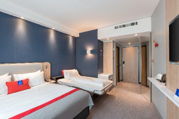 Central Siegen hotel with Wi-Fi and breakfast includedRight in central Siegen, Holiday Inn Express® Siegen hotel is a five-minute walk from Siegen's main train station and a short drive from Siegen University.International flights at Köln/Bonn Airport (CGN) are around an hour away by car. Just opposite the hotel is the Siegerlandhalle, a major conference venue where you can host meetings and events for small or large groups. Key local companies like Alstom and Siemens, AG are just a short drive away. Housed in an impressive hilltop castle only 15 minutes’ walk from the hotel, the Siegerlandmuseum has a large collection of works by baroque painter and Siegen native Peter Paul Rubens. Western-themed Elspe Festival Park, home of the summer Karl-May-Festival, is just 50 minutes' drive away.At this hotel you can enjoy:- Inclusive Wi-Fi Express Start™ Breakfast included in the room rateA 24-hour bar with snacksparking availability on requestWelcoming hotel rooms offer Next Generation design, including modern comforts like a flat-screen TV, tea and coffee makers and Family rooms have sofa beds, ideal for kids. You can invite friends and colleagues for a drink and a bite to eat at the 24-hour bar in the hotel's bright, modern lobby.