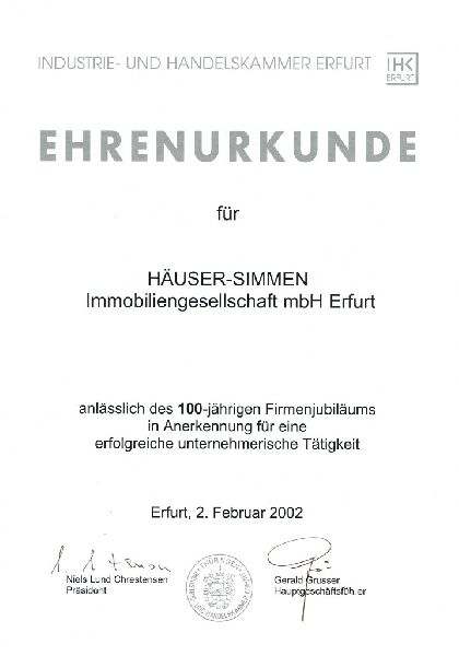 Möchten sie eine Immobilie verkaufen oder erwerben? Dann ist die Häuser-Simmen Immobiliengesellschaft mbH Ihr sach- und fachkompetenter Immobilienmakler in Erfurt, gegründet 1902. Wir verfügen über langjährige Erfahrung und einen hohen Bekanntheitsgrad in unserer Region. Daraus resultiert ein für unsere Branche einmaliger Wissensschatz, den wir Ihnen gerne zur Verfügung stellen möchten.