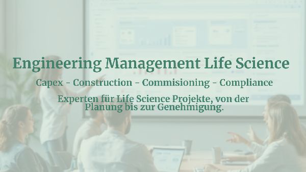 Engineering Management für Life Sciences GMP- Engineering & Projektmanagement für Life Sciences Engineering Management für Life Science, Biotechnologie, Pharmazeutik und Medizintechnik Die EMLI GmbH ist Ihr Engineering-Partner für anspruchsvolle Projekte in der Life-Science-Branche. Als erfahrenes Ingenieurbüro unterstützen wir Pharma-, Biotech- und Medizintechnikunternehmen mit GMP-konformen Lösungen, effizientem Projektmanagement und praxiserprobter Expertise. Unsere Stärke liegt in der Verbindung aus technischem Know-how, regulatorischer Sicherheit und wirtschaftlichem Denken. Ob CAPEX-Projekt, Prozessautomatisierung oder Anlagenqualifizierung wir liefern, was funktioniert.