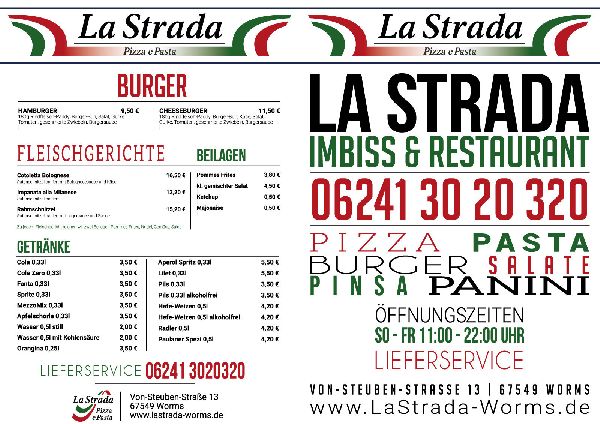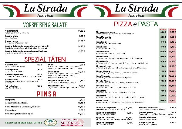 Entdecken Sie kulinarische Vielfalt unter einem Dach! Unser italienisch-internationales Restaurant vereint das Beste aus verschiedenen Küchen für jeden Geschmack. Unsere Spezialitäten: Authentisch Italienisch: Knusprige Steinofen-Pizza, luftige Pinsa Romana, hausgemachte Pasta und goldene Arancini Sizilianische Köstlichkeiten: Traditionelle Mpignulate nach Familienrezept International: Saftige Burger, würziger Döner, warme Paninis Alle Gerichte in verschiedenen Variationen von klassisch bis kreativ! Warum La Strada? Frische Zutaten täglich, Schneller Service für Eilige, Gemütlich speisen oder zum Mitnehmen, Familienfreundliche Preise, Lieferservice verfügbar Ob schneller Imbiss oder entspanntes Dinner