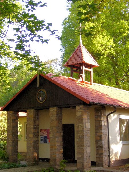 Die Waldkapelle wurde im Jahr 1948 von den Einwohnern der 1931 gegründeten Dietzenbacher „Siedlung Steinberg“ als Fachwerkbau errichtet und im Jahr 1957 erweitert, wodurch die „Kapelle“ mit ihren etwa 180 Sitzplätzen einen kreuzförmigen Grundriss erhielt. Unter uralten Eichen, Buchen und Kiefern gelegen ist die Waldkapelle ein meditativer Ruhepol ganz im Norden Dietzenbachs.