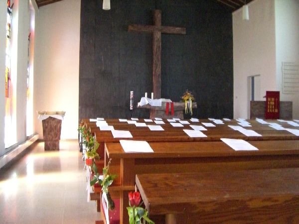 Die Christuskirche wurde erst in den 60er Jahren gebaut. Prägend für diese kleine und gemütliche Kirche sind die bunten Kirchenfenster und der dunkle Altarraum. Die Geschäftszeiten sind die Öffnungszeiten des Gemeindebüros, das in der Burgstraße 26 in Bad Camberg ist.