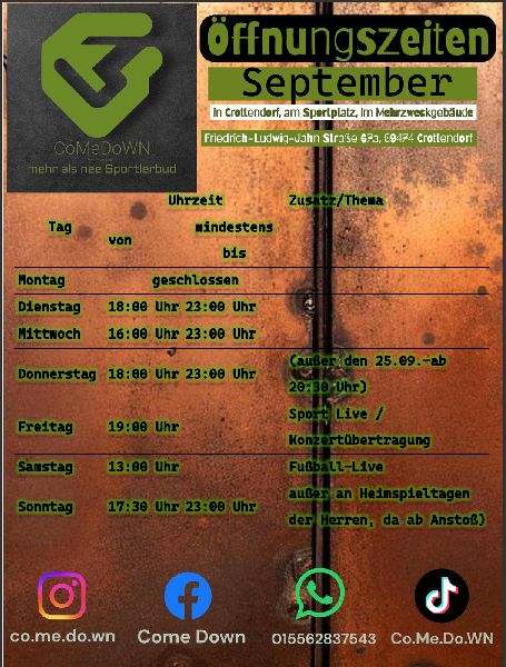 | Mittwoch | 18:00 - 23:00 Uhr |