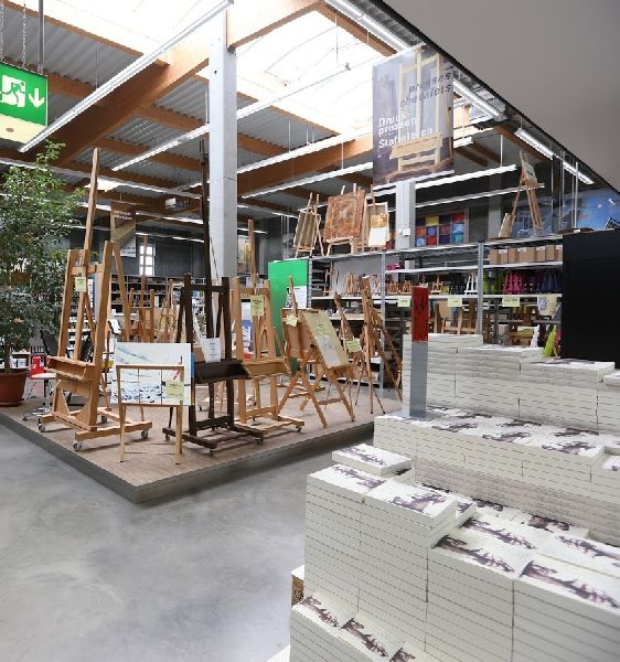 Auf einer Fläche von 3.200 m² werden alle Superlative an Künstlermaterialien und ein großzügiger Einrahmungsbereich geboten.