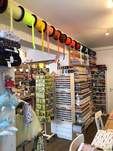 Stoffe, Sticken, (Wir besticken auch mitgebrachte Textilien) Nähzubehör. Stickgarne - über 200 Farben, Reißverschlüsse Meterware, Geschenkartikel für kleine -und für große Leute. Wir führen keine Knöpfe -und Wolle.