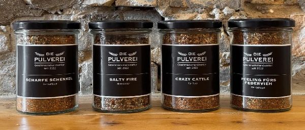 Die Pulverei ist eine familiäre und kleine Manufaktur für hochwertige Gewürzmischungen, die fast ausschließlich Biogewürze und Himalayasalz verwendet. Mit CO2-neutralem Versand und möglichst plastikfreien Verpackungen setzt sie voll auf Nachhaltigkeit. Gewürze werden stets frisch gemahlen. Versandkostenfreie Lieferung ab 49 Euro und Empfehlungsrabatte sind verfügbar. Die Pulverei schätzt familiäre Werte, Ehrlichkeit, echte Freundschaften und Nachhaltigkeit. Produkte werden über einen Webshop vertrieben.