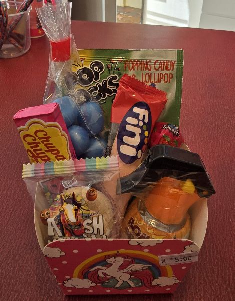 Wir verkaufen Süssigkeiten aus aller Welt. Z.B. Pokemon Kekse aus Japan, Nerds aus den USA und Fruchtgummi aus Spanien, sowie Dragibus aus Frankreich.