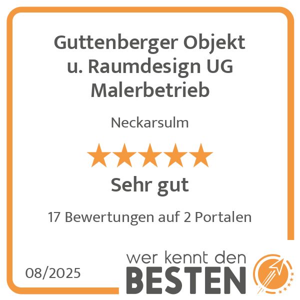 Sie sind auf der Suche nach einem Maler, der sich gewissenhaft um Ihre Anliegen und Projekte kümmern kann? Wir von der Firma Guttenberger Objekt- und Raumdesign sind bereits seit Langem darauf spezialisiert, Ihnen kreative Gestaltungsmöglichkeiten mit Farbe umzusetzen. In gleichem Maße stehen wir für eine professionelle Umsetzung unserer Ideen ein. Unsere Lackierer und Maler zeichnen sich allesamt durch eine fundierte Ausbildung aus. Die ausschließliche Verwendung von hochwertigen Materialien stellt für uns eine Selbstverständlichkeit dar. Momentan konzentriert sich unser Einsatzgebiet zu einem überwiegenden Maße auf den Bereich Oedheim und Umgebung.