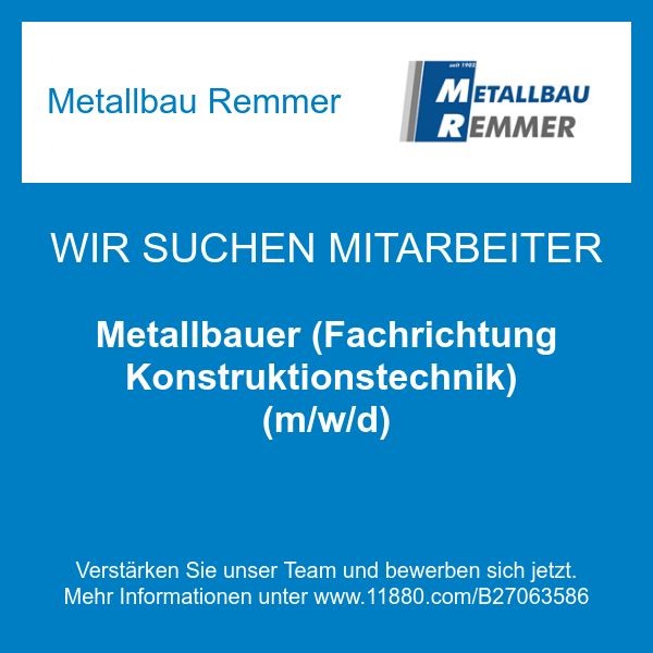 Wir sind ein Familienbetrieb, nunmehr in der vierten Generation, geführt von Metallbauermeister und EWS-Schweißfachmann Robert Remmer.Zu unseren Leistungen zählen Beratung, Fertigung, Lieferung, Montage und Reparatur u.a. von Garagentoren mit und ohne Antrieb, Aluminium-Haustüren und Fenster, Vordächer, Terrassenüberdachungen, Markisen, Insektenschutzsystem, Hof- und Gartentore, Zaunanlagen, Fahnenmasten, Anbaubalkone, Balkongeländer, Stahltreppen, Treppengeländer sowie Sonderkonstruktion wie zum Beispiel Möbelstücke, Grills u.v.m. aus Stahl, Edelstahl oder Aluminium auch in Kombination mit Glas, Holz oder Kunststoff.