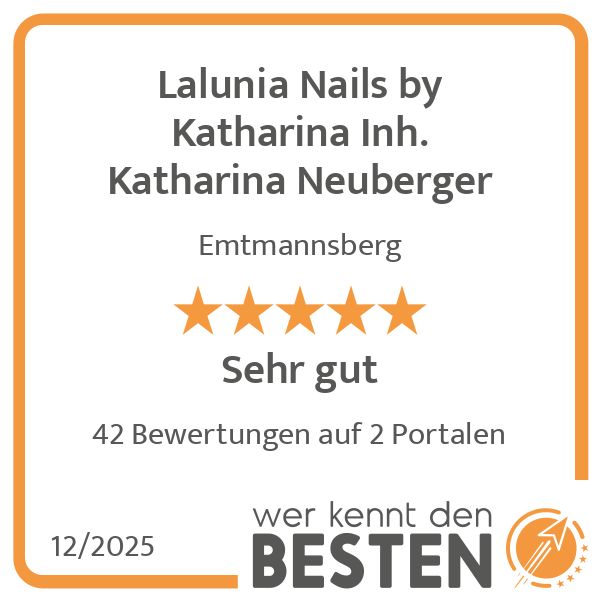Schöne und gepflegte Hände sind wie ein Aushängeschild, schöne Nägel ein Mittel seine Persönlichkeit zu unterstreichen. Wir von Lalunia Nails by Katharina in Emtmannsberg sorgen für Hände und Nägel, die Sie gerne zeigen werden. Mit über 10 Jahren Erfahrung verwandele ich Ihre Hände in einen wahren Blickfang. Um mit meinem Angebot von Nail-Art up to date zu sein, besuche ich regelmäßig Fachmessen und lasse mich dort zu neuen Designs inspirieren. Bei Ihrem Termin bei mir können Sie aus meinen Nail-Art-Vorlagen wählen oder Ihre Idee und meine Kreativität vereinen sich zu Ihrem persönlichen Nageldesign. Rufen Sie gern für einen Termin an.