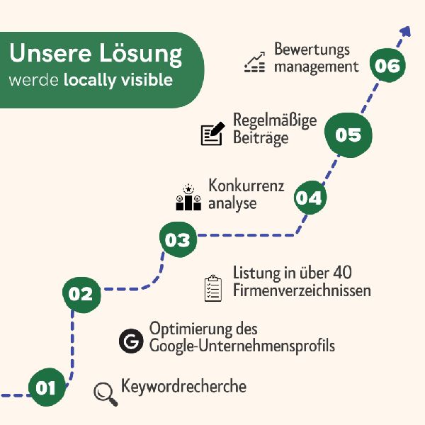 Für den lokalen Erfolg Ihres Business brauchen Sie eine Local SEO Optimierung mit einer hochwertigen Google My Business Präsenz. Locally Visible aus Berlin bringt Sie im Local Ranking nach oben. Verbessern Sie Ihre Rankings in Google Maps durch Keyword-Analysen und effektive Content-Erstellung mit Locally Visible. Wir helfen Ihnen neue Kunden für Ihr lokales Business zu gewinnen.