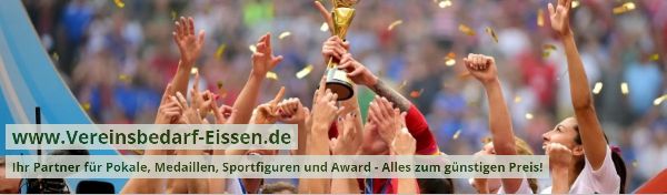 Vereinsbedarf-Eissen hat ein weitreichendes Sortiment. Alles was Vereine, Kommunen und Privatpersonen suchen. Ein kleiner Ausschnitt unseres Sortimentes: Pokal in vielen Farben und Größen, Medaillen in verschiedenen Formen, Farben und Größen, Figuren mit Marmorsockel für nahezu alle Sportarten. Ehrungsnadeln, Urkunden, Ehrenscheiben, Tombolalose und Nieten runden das Programm ab.