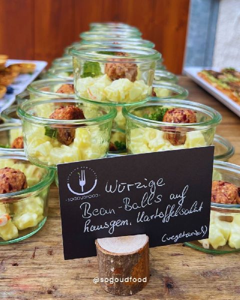 Vegetarisch, vegan, zucker-, laktose- oder glutenfrei: SoGoud Food ist spezialisiert auf frisch zubereitete und liebevoll garnierte Gerichte. Vom knackigen Salat über aufwendige Menüs bis hin zum raffinierten Desserts für Messe-, Business-, Firmen- und Privat-Event. Gruppen ab zehn Personen aus der Metropolregion Nürnberg kommen in den Genuss extravaganter Kulinarik aus besten regionalen Zutaten. Auf Wunsch inklusive Getränkeservice vom Kaffee bis zum Cocktail, Profi-Kellner, komplettem Gedeck und liebevoller Deko.