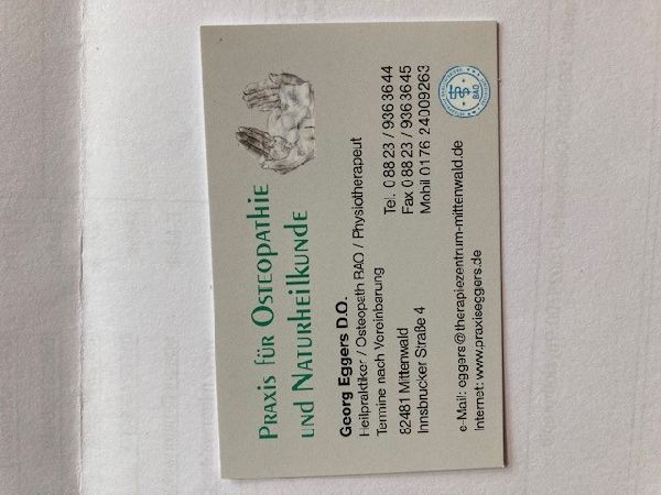 Die Praxis für Osteopathie / Naturheilkunde und Physiotherapie befindet sich in der Innsbrucker Straße 4, in 82481 Mittenwald im ersten Stock. Erreichbar ist die Praxis über einen geräumigen Fahrstuhl (behindertengerecht) oder alternativ über das Treppenhaus. Es wird Wert auf eine qualifizierte Ausbildung auf hohem Niveau gelegt. Wir erfüllen alle Kriterien, die die Bundesarbeitsgemeinschaft Osteopathie e.V. (BAO) verlangt. Die praktizierenden Osteopathen haben die gesetzlich vorgeschriebene Erlaubnis zur Ausübung der Heilkunde (Heilpraktikererlaubnis).