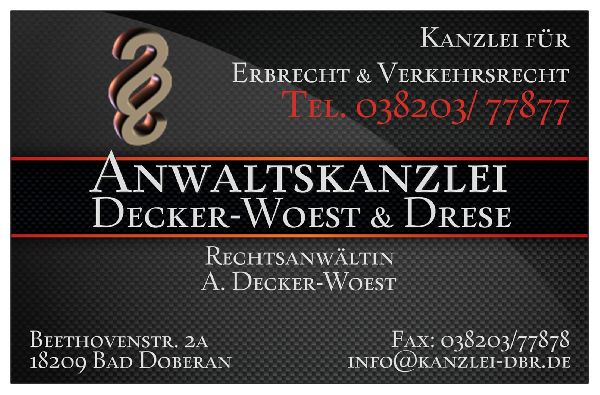 Zu Anwaltskanzlei Decker-Woest wurden bisher noch keine Informationen eingetragen.