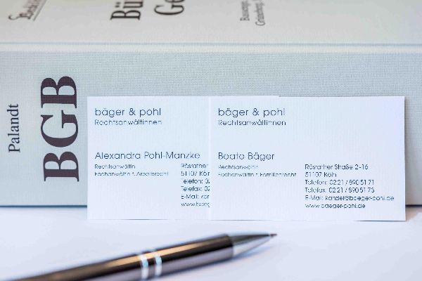 Fachanwältin Pohl-Manzke: erfahrene Anwältin für Arbeitsrecht in Köln - Beratung im Arbeitsrecht - Hilfe bei Kündigung und Abmahnung - Vertretung in Kündigungsschutzklagen - Durchsetzung von Lohnansprüchen Fachanwältin Bäger: seit mehr als 20 Jahren Erfahrung als Anwältin im Familienrecht in Köln - Ersteinschätzung bei Trennung - Beratung zu Unterhalt, Sorgerecht und Vermögensauseinandersetzung - Scheidungsanwältin.