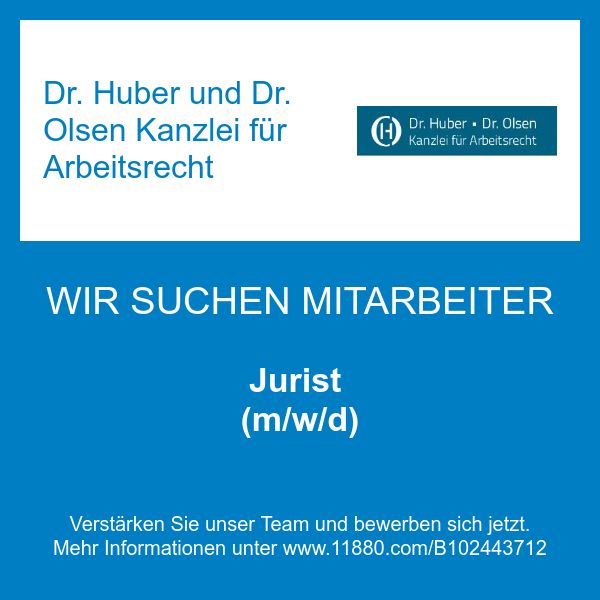 Es gibt einen Konflikt in Ihrem Arbeitsleben und Sie suchen nach einem Fachanwalt für Arbeitsrecht, der Sie kompetent beraten und vertreten kann? In unserer Kanzlei in München finden Sie erfahrene und bewährte Experten für individuelles und kollektives Arbeitsrecht, die Sie bei der Bewältigung Ihres Rechtsproblems engagiert unterstützen. Die beiden Partner der Kanzlei, Dr. Huber und Dr. Olsen, befassen sich jeweils seit mehr als 15 Jahren intensiv mit allen Belangen des Arbeits- und Betriebsverfassungsrechts, unter anderem mit komplexen Restrukturierungen. Mit der regelmäßigen Teilnahme an Fortbildungen stellen wir sicher, dass unser Fachwissen stets auf dem neuesten Stand der Rechtsprechung ist. Zudem sind wir selbst als Referenten an Weiterbildungsinstituten tätig.
