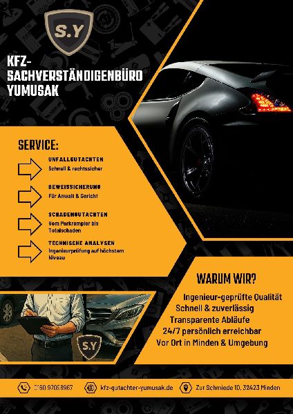 Wir sind Ihr zuverlässiger Partner für unabhängige Kfz-Schadengutachten und Fahrzeugbewertungen in Minden und Umgebung. Als zertifizierter Maschinenbautechniker mit technischer Expertise auf Ingenieurniveau biete ich Ihnen exakte Bewertungen und rechtssichere Gutachten für alle Fahrzeugklassen. Unsere Leistungen umfassen Unfallgutachten, Wertgutachten, Beweissicherungen und technische Analysen – schnell, fair und kompetent. Dank unseres mobilen Vor-Ort-Services sind wir flexibel im Einsatz – ganz ohne Aufwand für Sie. Wir sind 24/7 erreichbar und beraten Sie persönlich in allen Schadensfragen. Vertrauen Sie auf unabhängige Gutachten mit Fachwissen und Integrität.