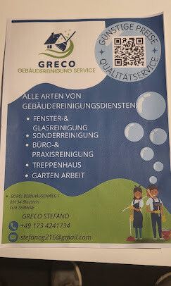 Service Greco steht für erstklassige Gebäudereinigung in Blaustein, Württemberg. Unser breites Dienstleistungsangebot umfasst Büro-, Fenster- und Glasreinigung, wodurch wir uns als kompetenter Partner für Sauberkeit und Hygiene in gewerblichen sowie privaten Objekten etabliert haben. Qualität, Zuverlässigkeit und Kundenzufriedenheit bilden das Fundament unseres Handelns.