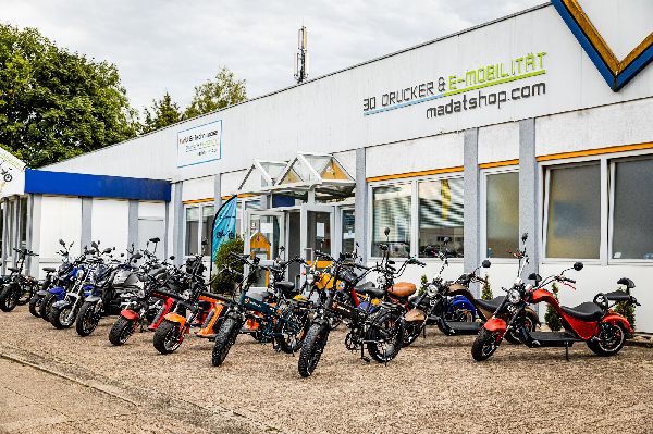 Madatshop seit 2016 tätig, im Branch E-mobilität. In Showroom Bielefeld können Sie unsere verschiede Models von E-roller,E-Kabinroller,E-scooter,E-chopper und E-fahrrad anschauen, probefahren, und bei Gefallen gleich erwerben. Wir geben 2 Jahre Garantie. Ersatzteile für alle Modelle können ebenfalls über uns bezogen werden. Für die Inspektion und Reparatur stehet Ihenen unsere Werkstatt zur Verfügung. Niedrige Preise für Gute Produkte zeichnet uns aus. Wir haben immer sehr viele Modelle vorrätig auf Lager an unserem Standort in Bielefeld. Wir versenden täglich mit der Spedition oder mit unserem eingenen Transporter. In unserem 300 gm großem Showroom an unserem Standort in Bielefeld finden Sie die aktuellsten Modele.