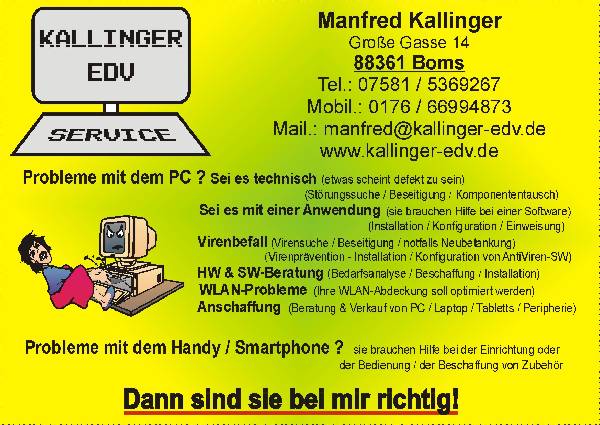 Derzeit sind keine weiteren Informationen zum Betrieb Kallinger-EDV-Service eingetragen.