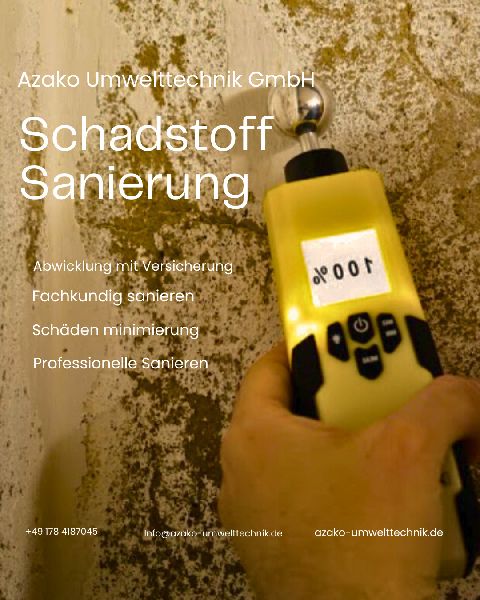 Die Azako GmbH ist Ihr kompetenter Partner für Schadstoffsanierungen. Mit unserem erfahrenen Team bieten wir umfassende Dienstleistungen zur Identifizierung und Entfernung von schädlichen Stoffen in Gebäuden und Industrieräumen. Unsere Lösungen sind maßgeschneidert, sicher und umweltfreundlich, um die Gesundheit von Mensch und Natur zu schützen. Wir setzen modernste Technologien ein, um Schadstoffe schnell und effektiv zu beseitigen, und garantieren höchste Qualitätsstandards in jeder Phase des Sanierungsprozesses.