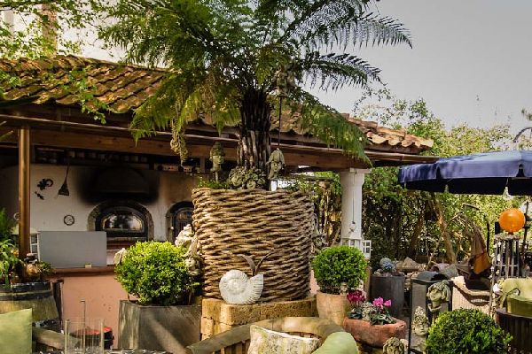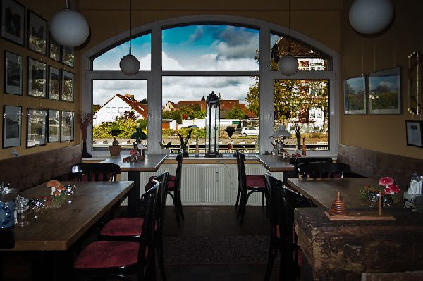 Restaurant mit Biergarten und großer Gästebibliothek