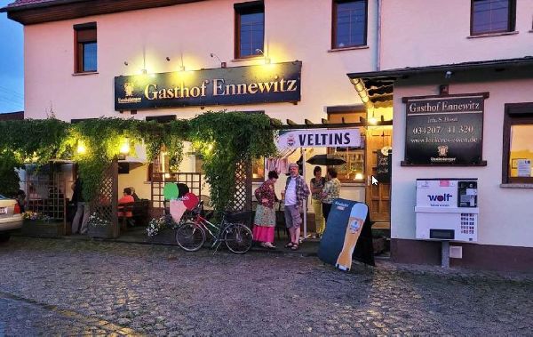 Gasthof Ennewitz: Hier bei uns auf dem Lande sagen sich nicht nur Fuchs und Hase Gute Nacht. Hier grüßen sich auch die Nachbarn. Hier wird reiner Wein eingeschenkt und ein flüssiges Abendrot legt sich über weite Blicke. Hier buchstabiert man das Wort ROMANTIK noch anders. Hier findet man den passenden Rahmen, um die Tür ruhig ins Schloss fallen zu lassen. Wer uns besucht, erlebt das Hier und Jetzt, versprochen!