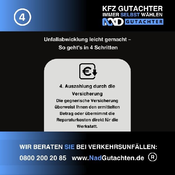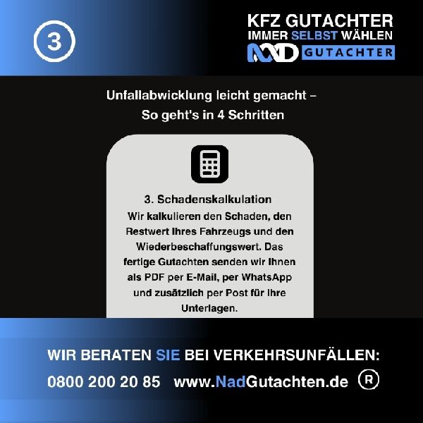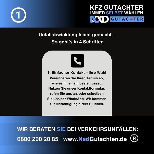 Nutzen Sie Ihr Recht und wählen Sie Ihren Gutachter selber, profitieren Sie von unserem Full-Service-Angebot – die Kosten übernimmt die Versicherung des Unfallverursachers!