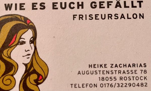 Derzeit sind keine weiteren Informationen zum Betrieb Friseursalon | "Wie es euch gefällt..." | Friseurin: Heike Zacharias | Rostock | seit 1993 eingetragen.