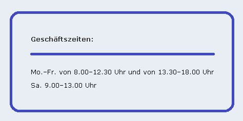 Montag : 08:00 - 12:30, 14:00 - 18:00