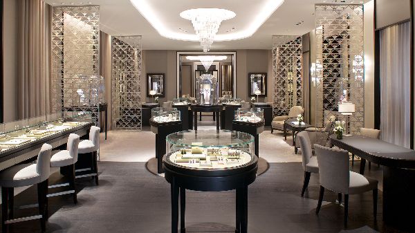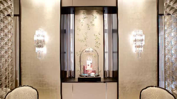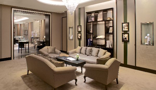 Van Cleef & Arpels eröffnete in der Münchner Maximilianstraße seine erste Boutique in Deutschland. Die großzügigen Räume zeigen sich in eleganten Beige- und Weißtönen, die mit dunklem, vom Art déco inspirierten Interieur und mit Blattgold akzentuierten Elementen harmonieren. Das Dekor spiegelt in allen Details die Eleganz der Haute Joaillerie-, Schmuck- und Uhrenkollektionen der Maison wider.