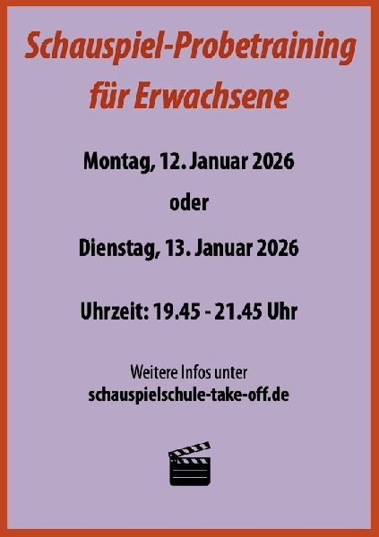 Die aktuellen Termine zum Schauspiel-Probetraining sind auf der Webseite veröffentlicht!