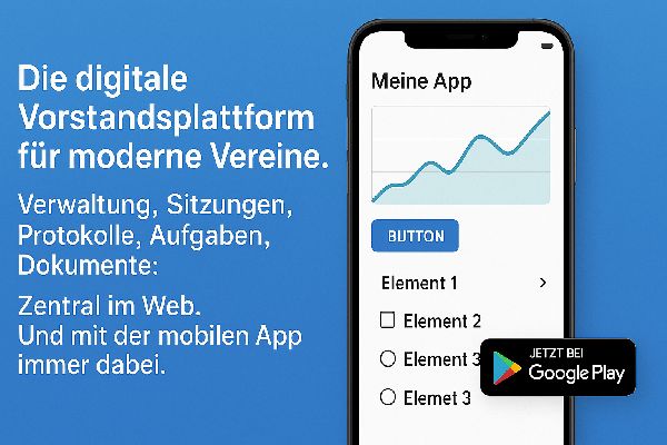 Verwaltung, Sitzungen, Protokolle, Aufgaben, Dokumente. Vorstandsarbeit wurde aus realer Vereinsarbeit heraus entwickelt und unterstützt Vorstände bei Organisation, Kommunikation und Dokumentation. Mit klaren Prozessen, nachvollziehbaren Abläufen und einer Oberfläche, die auch ehrenamtlich Engagierte sofort verstehen. Sitzungsmanagement (Tagesordnung, Protokolle, Beschlüsse), Aufgaben & Beschlussverfolgung, Dokumentenablage, Mitgliederrechte & Abteilungen, Rollen & Transparenz, Digitalisierung der Vorstandsprozesse
