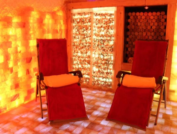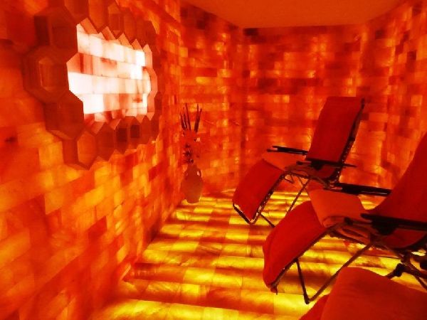 In unseren 3 Salzräumen nehmen Sie inmitten vieler Tonnen Natursalz in Ihrer ganz normalen Alltagsbekleidung auf bequemen Relaxliegen Platz. Sie erleben bei einer Raumtemperatur von ca. 20 bis 22°C die harmonische Farbenvielfalt der hinterleuchteten Salzwände, besinnliche Entspannungsmusik und eine Verneblung reiner Natursole.