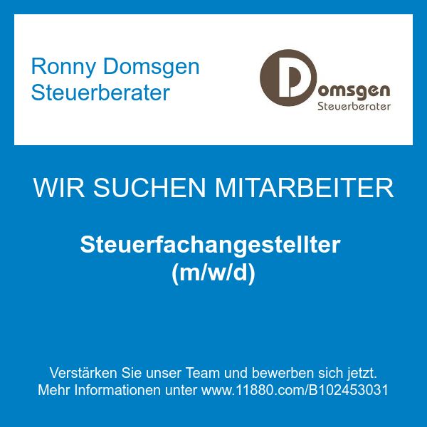 Mein Name ist Ronny Domsgen und ich bin für Sie als Steuerberater im Einsatz. Bereits seit 2007 stehe ich Ihnen bei allen Anliegen rund um Steuern, Buchführung & Co. zur Verfügung. Dabei spielt es keine Rolle, ob Sie meine Dienste als Privatperson, im Auftrag Ihrer Firma oder im Namen eines Vereins in Anspruch nehmen wollen. Meine Kenntnisse halte ich durch regelmäßige Weiterbildungen stets auf dem aktuellen Rechtsstand. Zudem bin ich Mitglied der Interessengemeinschaft Innenstadt Magdeburg e.V. Kontaktieren Sie mich gerne in Burg, ich freue mich darauf, auch Ihnen bald weiterhelfen zu können!