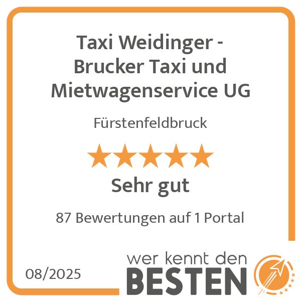 Wir sind Ihre erstklassige Wahl für zuverlässige Personenbeförderung in Fürstenfeldbruck und Umgebung. Ob Taxi, Flughafentransfer, Krankenfahrten oder Botendienst – Taxi Weidinger bietet Ihnen einen umfassenden Service für alle Ihre Mobilitätsbedürfnisse. Unsere Mission ist es, Ihnen nicht nur eine Fahrt von A nach B zu bieten, sondern eine, die durch Komfort, Sicherheit und Freundlichkeit geprägt ist.