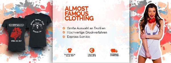 AFC Textildruck ist eure Textildruckerei für hochwertigen Bandmerch zu günstigen Preisen. Vom Greenhorn bis zum Rockstar, wir bieten euch was ihr braucht. Ihr erhaltet euren persönlichen Berater der euch mit nützlichen Tipps und Tricks zur Seite steht. Findet zusammen mit eurem Ich Partner die für euch beste und günstigste Lösung. Auch wenn es einmal schneller gehen muss ist euer Ansprechpartner dafür zuständig, euren Auftrag mit unseren Lieferanten, der Druckerei und unseren Versandpartnern zu koordinieren. Somit garantieren wir, dass ihr eure Bandshirts wie zuvor geplant erhaltet.