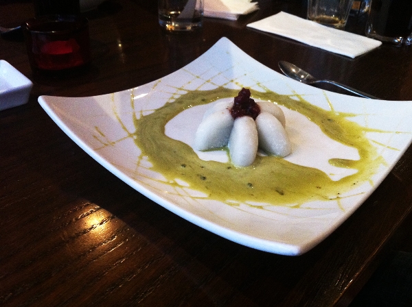 mit frischem Spinat und Sesamsauce |