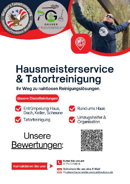 Grubers Entrümpelung + Hausmeisterservice und Tatortreinigung, ansässig im malerischen Biebergemünd, vereint Fachkompetenz in den Bereichen Entrümpelung, Hausmeisterservice und Haushaltsauflösungen. Wir bieten eine breite Palette von Dienstleistungen an, die von der gewöhnlichen Entrümpelung bis hin zur spezialisierten Tatortreinigung reichen. Dabei legen wir großen Wert darauf, Notfälle mit höchster Priorität und Professionalität zu behandeln.