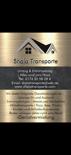 Shala Transporte, ansässig in Lüdenscheid, ist Ihr professioneller Ansprechpartner für Umzüge, Entrümpelungen, Haushaltsauflösungen, Gerüstbau und Bodenlegearbeiten. Mit einem breiten Dienstleistungsspektrum decken wir eine Vielzahl Ihrer Bedürfnisse ab und gewährleisten einen reibungslosen Ablauf Ihrer Projekte. Unser Ziel ist es, den Stress dieser Prozesse zu minimieren und für Sie eine problemlose Erfahrung zu schaffen.