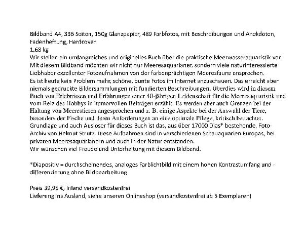 Wir, der S&L Naturverlag, Ilmenau, bearbeiten, produzieren und publizieren Naturbildbände, Nachschlagewerke und Bestimmungsbücher spezialisiert auf das Thema Meerwasseraquaristik. Wir informieren auch über die spezifischen Anforderungen bei der Pflege von Meerestieren (Korallenfische, Blumen-, Krustentiere usw.) im Salzwasseraquarium. Mit hervorragenden Fotoaufnahmen und einer lebendigen Erzählweise ziehen diese Bücher Naturinteressierte und Meerwasser-Aquaristikfans in ihren Bann. Wir bearbeiten und veröffentlichen aber auch Arbeiten und Manuskripte von Autoren zu anderen Naturthemen mit ihren Bildern und Texten.